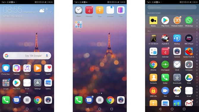 Kun Huawei P20 Pronajmout aluksi päälle, ei siinä ole sovellusvalikkoa.
