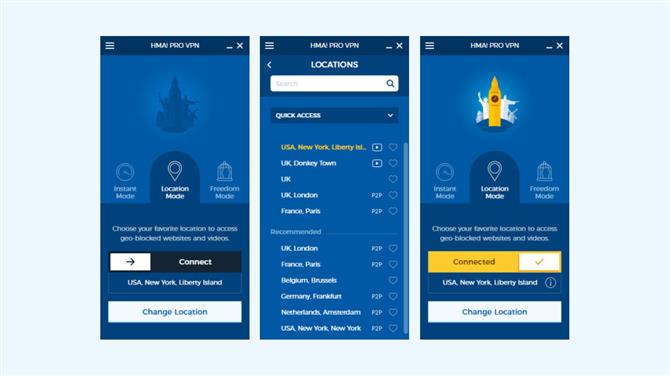 ‚Instant Mode‘ vás spojí s vaším nejbližším serverem pro bezpečné prohlížení, ‚Location Mode‘ umožňuje vybrat konkrétní umístění a ‚Freedom Mode‘ vám pomůže připojit se z omezené země (Írán, Čína) k méně regulovanému místu, což vám pomůže odblokovat webové stránky a novinky.