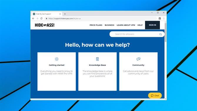 HideMyAss! Stránka podpory nabízí širokou škálu zdrojů, včetně průvodců nastavením, znalostní databáze, často kladených otázek, webového fóra a živého chatu 24/7.