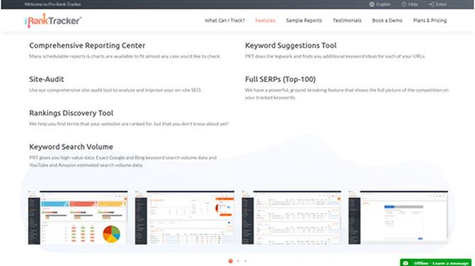 ProRankTracker je komplexní SEO nástroj a analytická sada pro vyhledávání podle hodnocení. Je navržen tak, aby pomáhal malým, středním a velkým podnikům shromažďovat údaje SEO na všech svých webových stránkách, analyzovat tato data, aby získával informace a identifikoval trendy SEO, a generoval hloubkové zprávy, které mohou tvůrcům rozhodnutí pomoci určit, která klíčová slova fungují dobře proti těm že špatně.